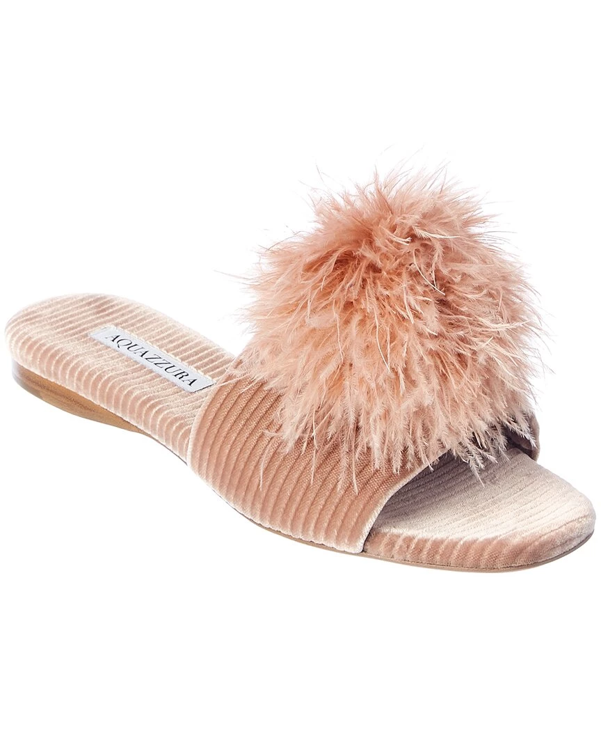 - Boudoir Corduroy Sandal In French Rose Corduroy With Fur Pom