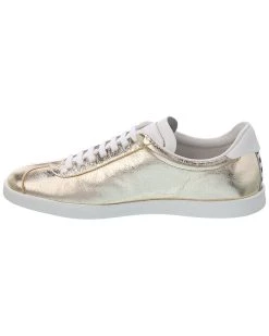 - Bow Tie 85 Leather Pump In Gold/Chocolate Metallic Leather With Cutout Design And Bow Accent