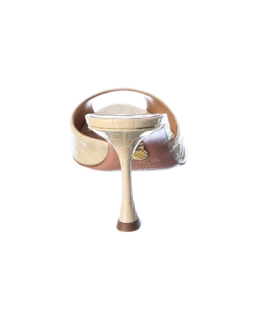 women Aquazzura Carrie 75 Croc-Embossed Leather Sandal