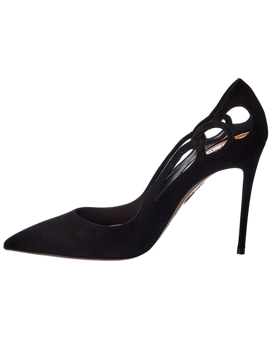 - Fenix 105 Suede Pump In Black Suede With Cutout Design And Pointy-Toe