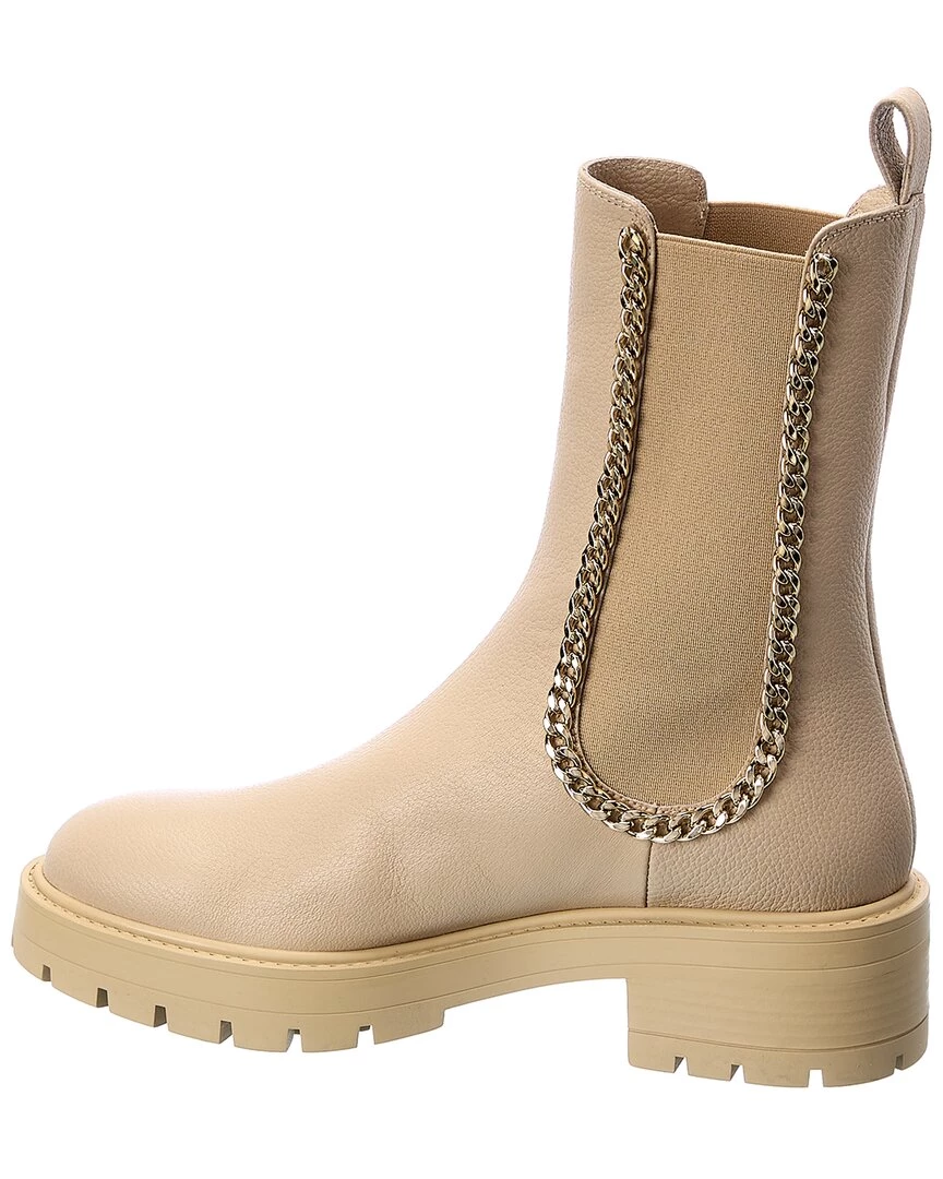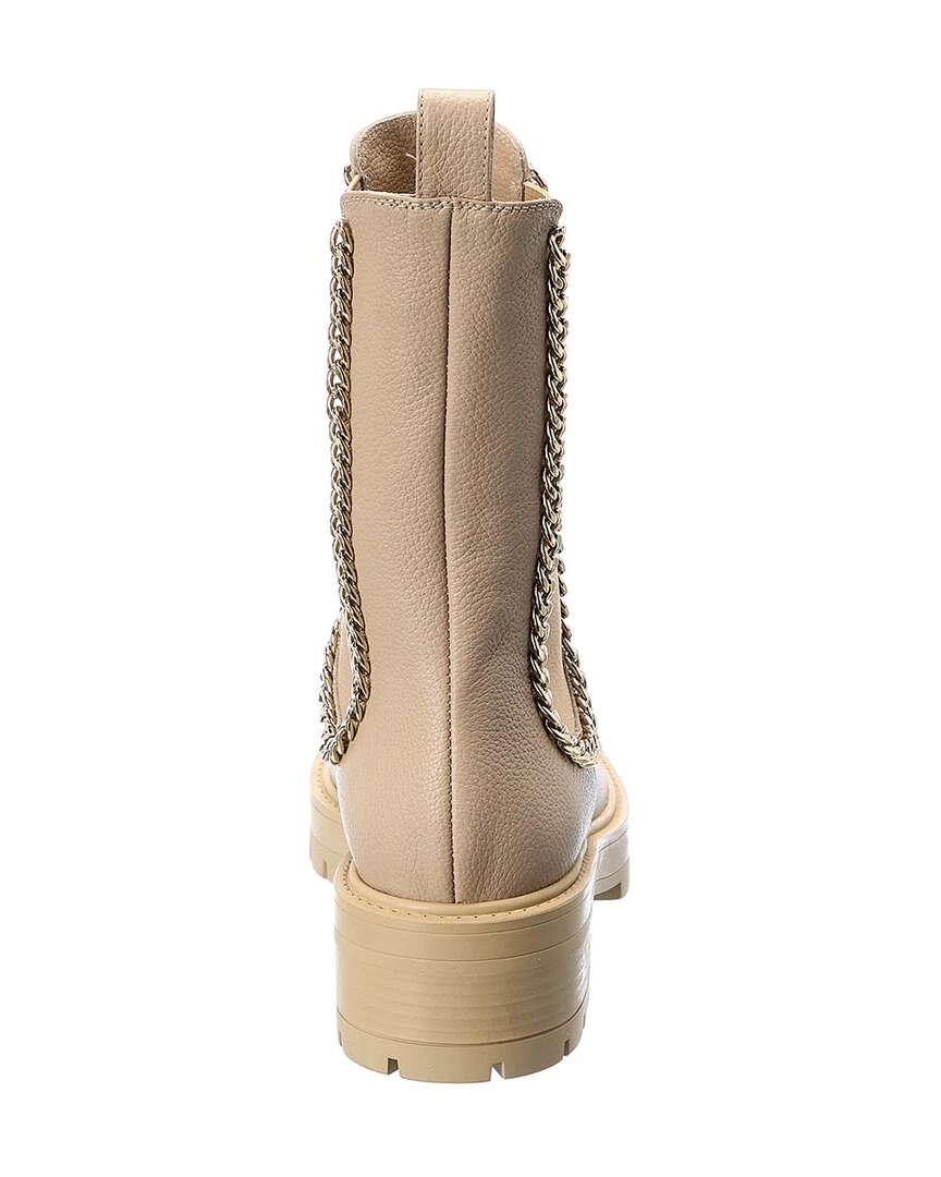 - Mason Leather Bootie In Soft Beige Leather And Gold-Tone Hardware With Chain Trim