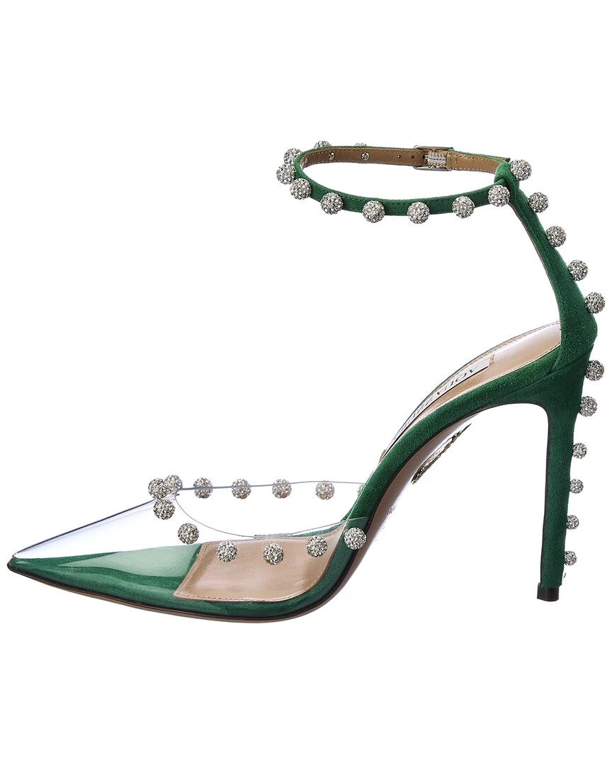 - Secrets 105 Plexi & Suede Pump In Emerald Green Suede And Transparent Pvc And Silver-Tone Hardware With Crystal Embellishments