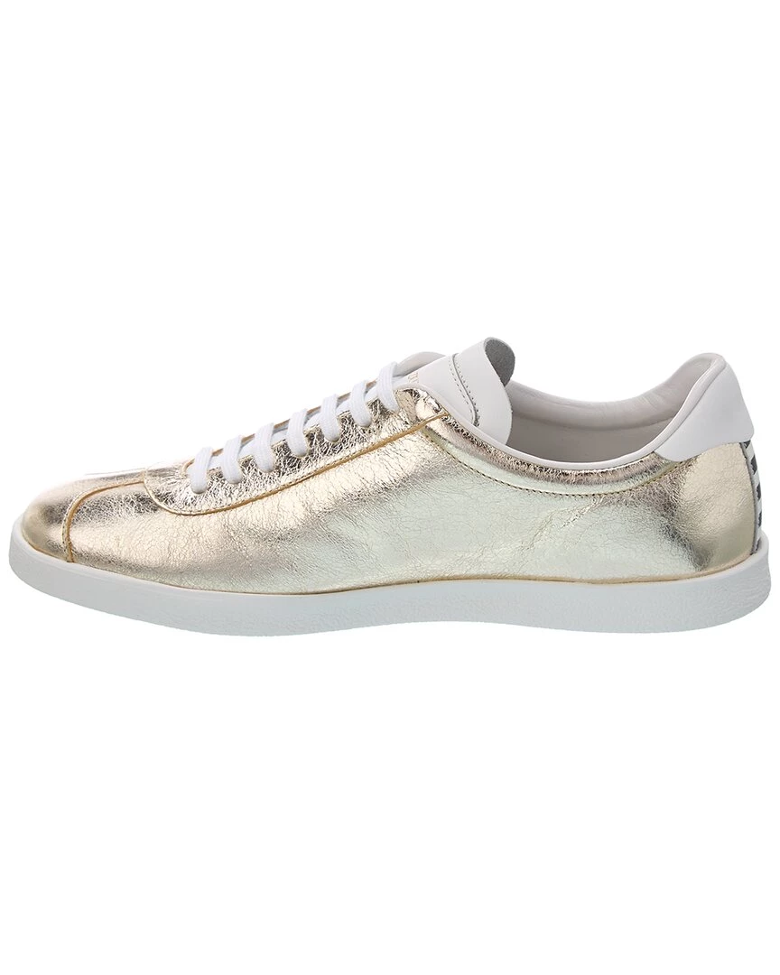 - The A Leather Sneaker In Platinum And White Leather With Logo Accents