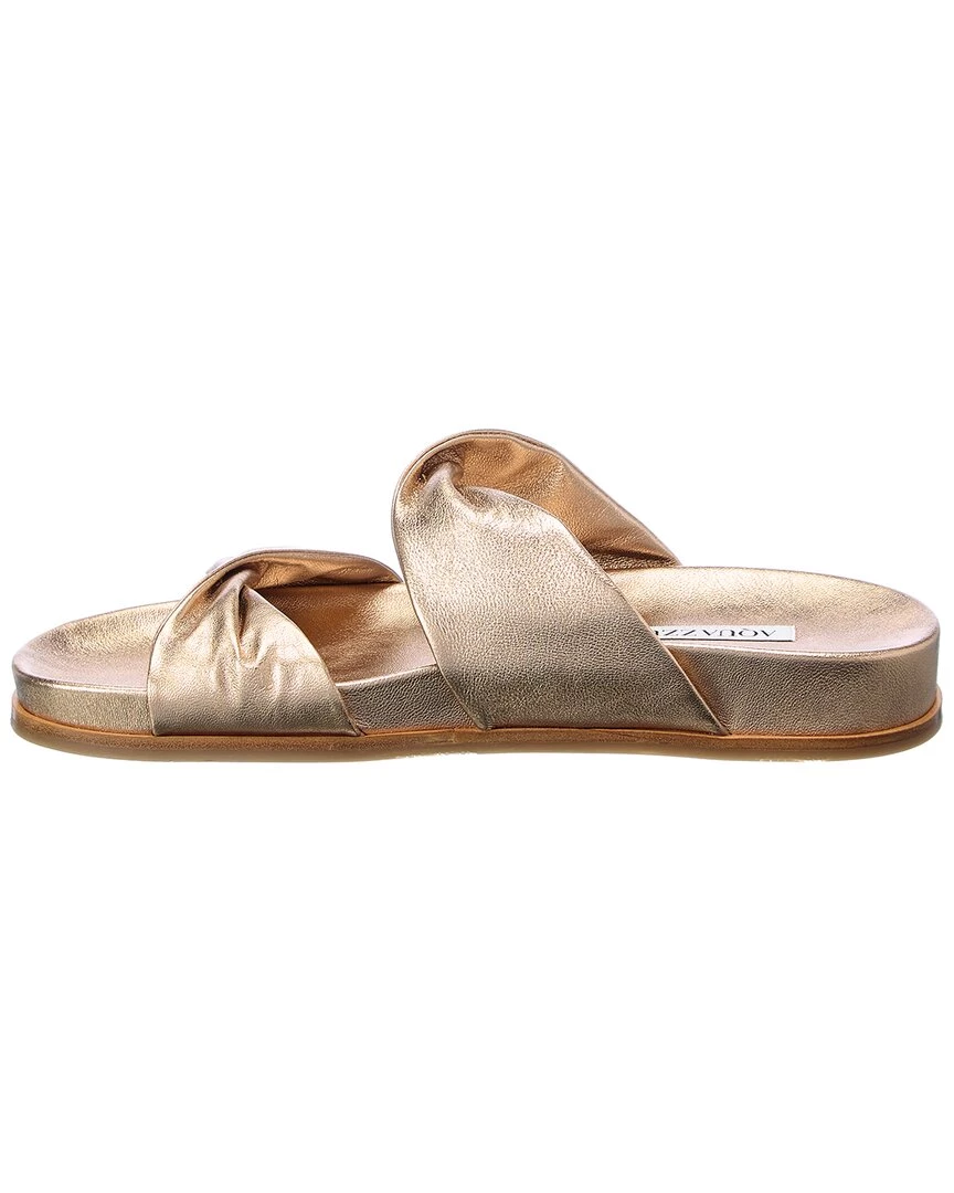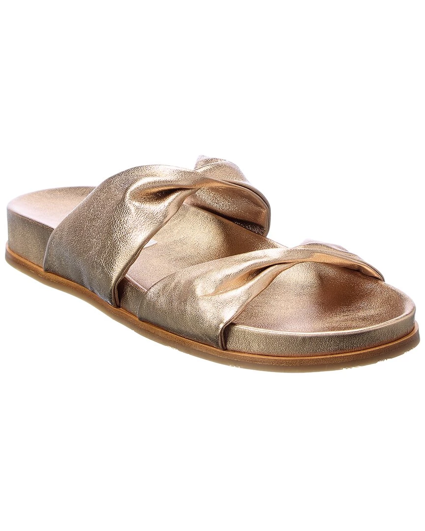 - Twist Leather Slide In Gold Leather With Twisted Straps