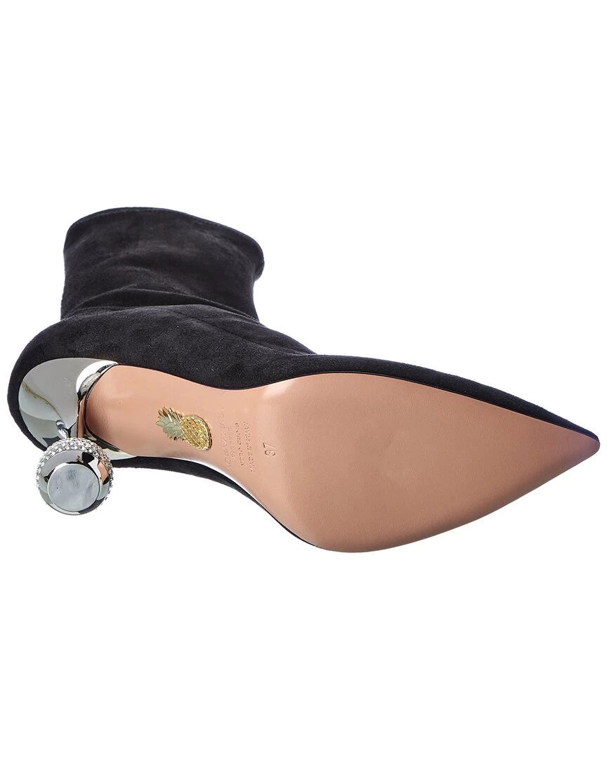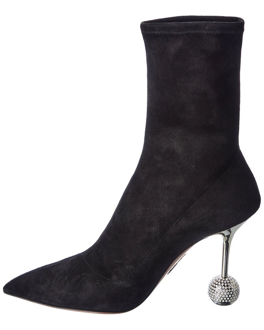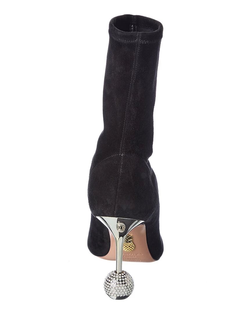 - Yes Darling 95 Suede Bootie In Black Suede And Silver-Tone Hardware With Pin Heel With Crystal-Embellished Ball