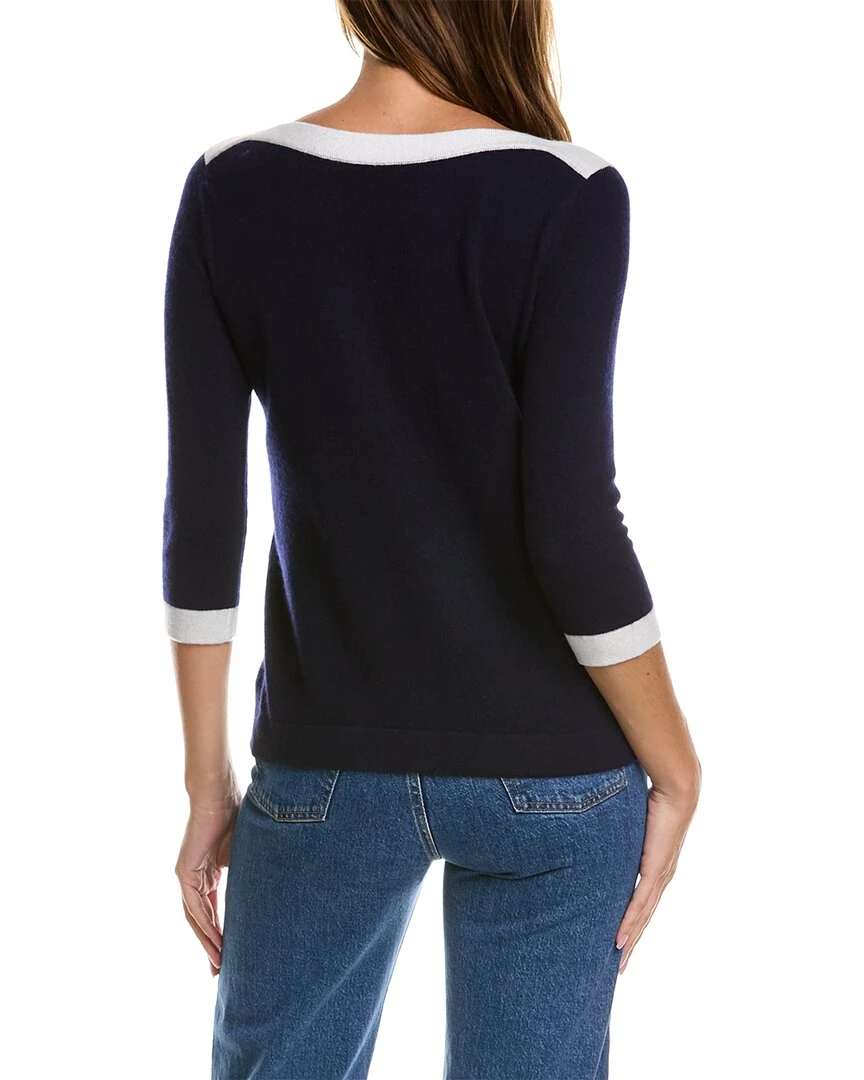- Boatneck Cashmere Sweater In Navy And Whisper White With 3/4-Length Sleeves