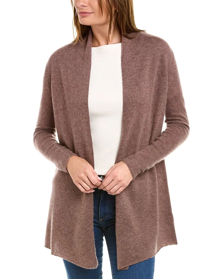 - Classic Cashmere Cardigan In Heather Caramel With Open Front