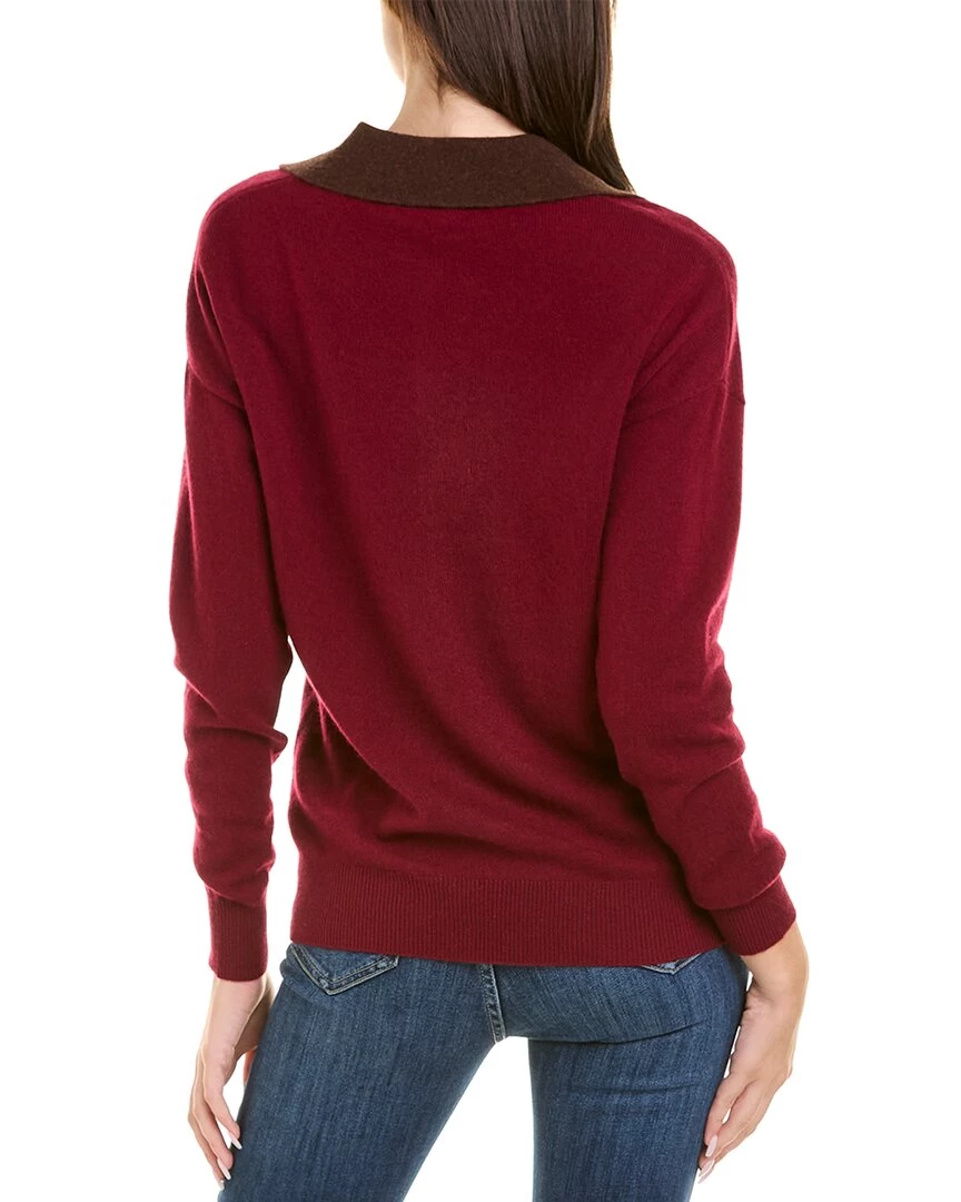 - Colorblocked Cashmere Polo Shirt In Currant Combo With Split Neck, Colorblocked Trim, And Dropped-Shoulder Sleeves