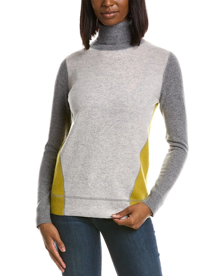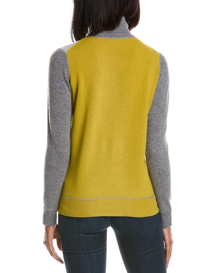 - Colorblocked Cashmere Sweater In Light Heather Grey Body & Avocado With Turtleneck