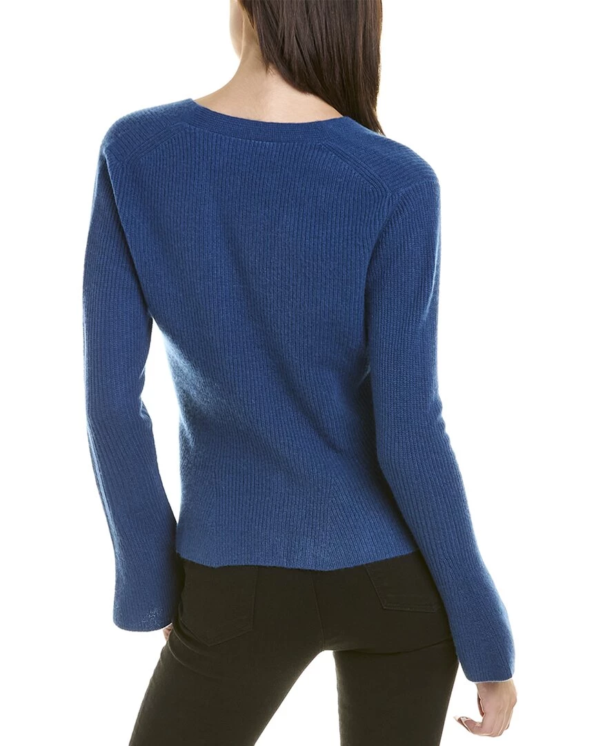 - Flare Cuff Cashmere Cardigan In Admiral Blue With V-Neck