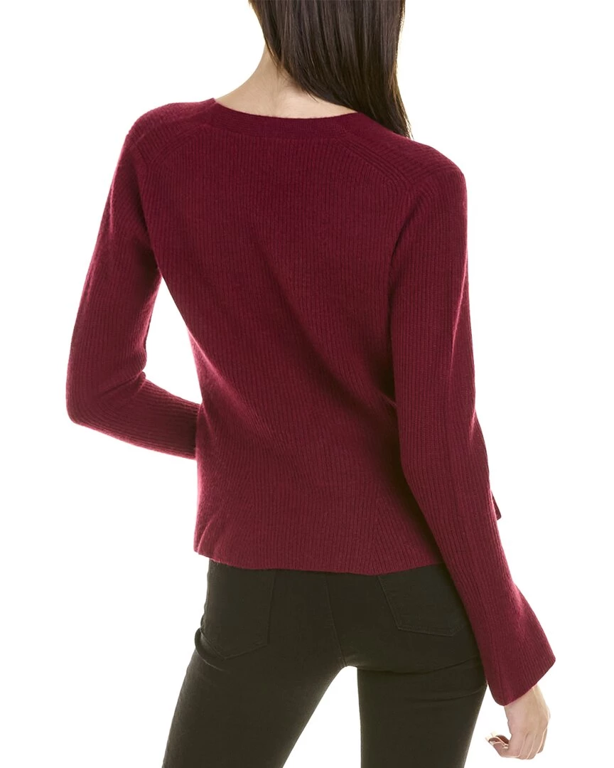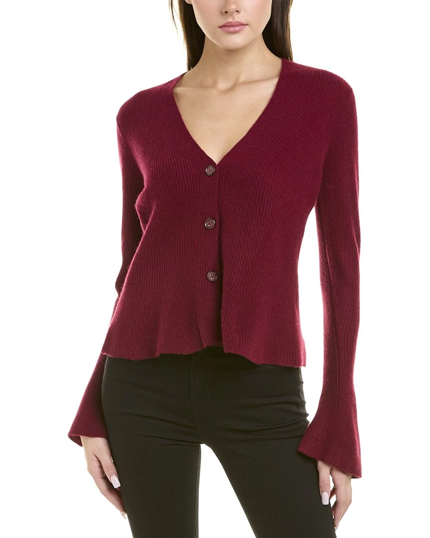 - Flare Cuff Cashmere Cardigan In Currant With V-Neck