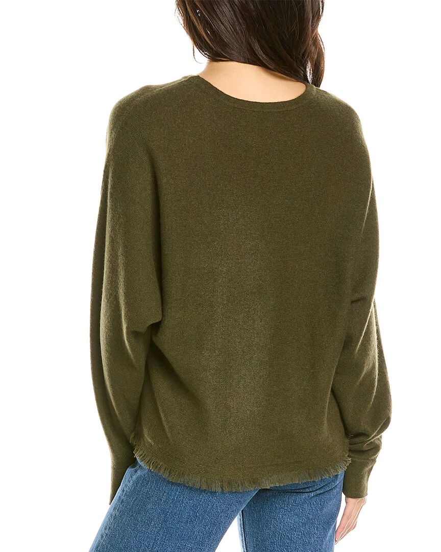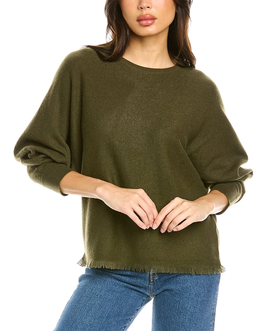 - Fringe Bottom Cashmere Sweater In Moss With Dolman Sleeves And Fringe Hem