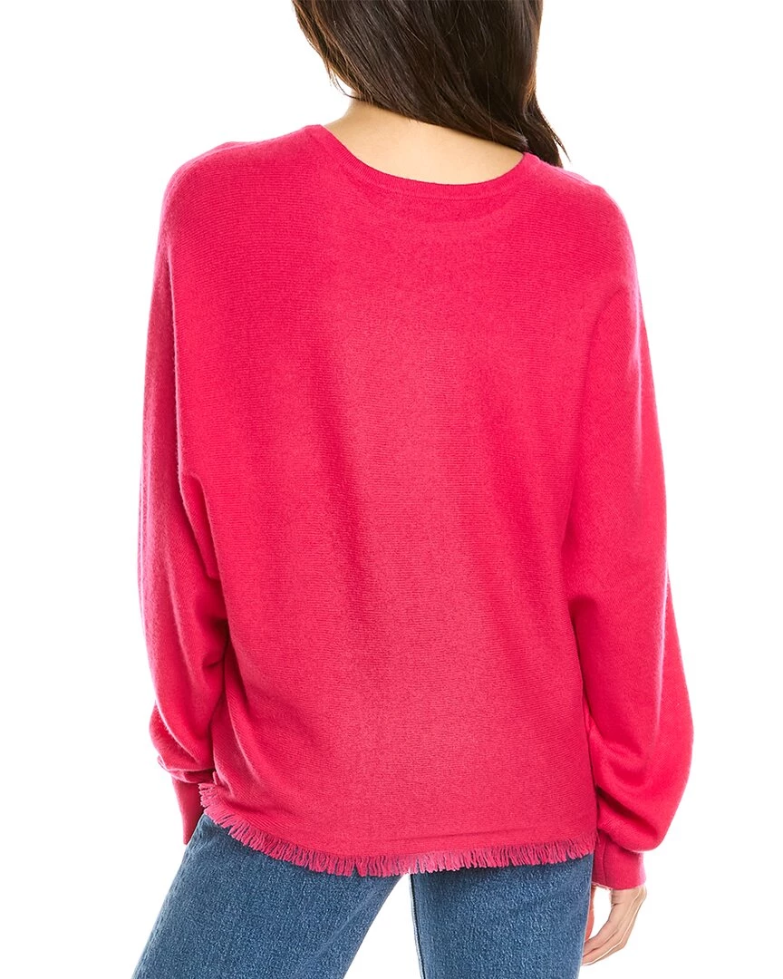 - Fringe Bottom Cashmere Sweater In Fuchsia With Dolman Sleeves And Fringe Hem