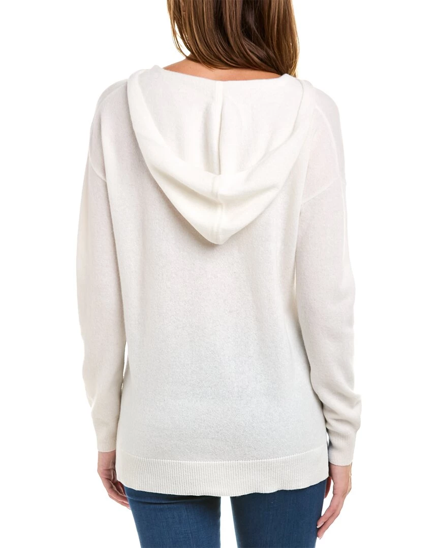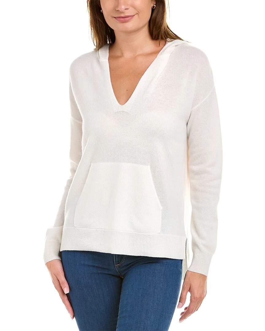 - High-Low Cashmere Hoodie In Whisper White With Dropped-Shoulder Sleeves And Kangaroo Pocket